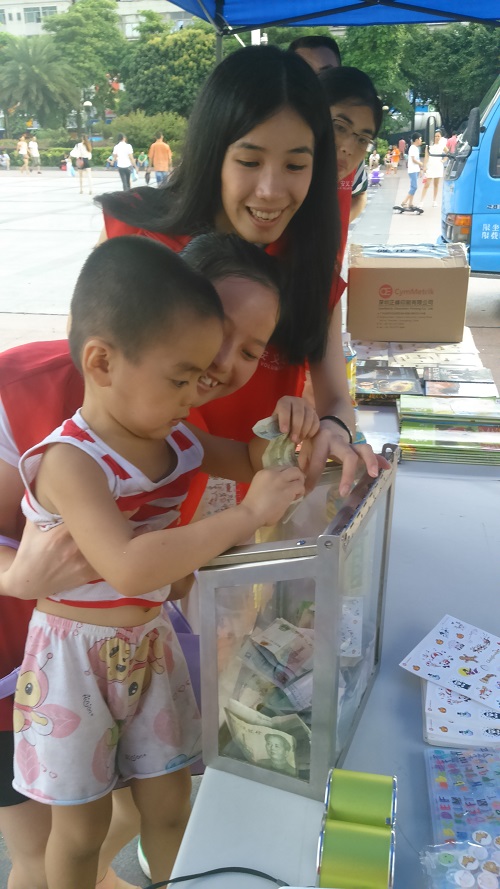 深圳福永小学一位小朋友被查出患有白血病,应福永义工联的邀请,在福永万福广场开展“关爱白血病儿童,爱心义卖活动”,深圳厂义工队在公司内部动员大家捐献自己闲置的物品,由义工队收集起来统一安排进行义卖。