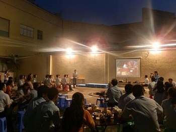 爲了舉辦燒烤&猜謎活動,廣東廠同仁團結合作,每個部門兩位員工組成的活動後勤團隊,成為了幕後英雄。下午4點30分,大夥開始準備工作,搬擺桌椅、投影儀及音響的調試、餐具及酒水的準備,場面非常的熱鬧,你幫我助,散發出濃濃的親情味,不是親人勝似親人。下午6點鐘,在孫總經理的致詞中,活動正式開始,過程中同仁們熱情高漲,紛紛獻歌助興,深圳廠張總經理獻歌一曲,更是令人感動。