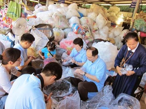 在慈濟人員的指導下,“正美志工團”實際體驗回收分類活動。紙張分類因處理流程不同,可分成大白、小白(二色以下)、色紙三大類,有訂書針或塑膠膜的部分都要移除;塑膠袋分類則要一剪一刀將透明及有顏色部分分開來,以提高其利用價值;瓶罐類分類則分成輕塑、硬塑、塑膠瓶、免洗餐具、吸管、玻璃瓶、電器類、一般垃圾等;寶特瓶分類分成透明、綠色、藍色等三種,有著不同的硬度和用途,回收前要將之壓扁。在大家齊心合力下,總共完成6箱紙類、3籃瓶罐類和4籃塑膠袋的分類,也踩扁了將近2,500個寶特瓶,更重要的是正美志工從中學習回收該注意的小細節。