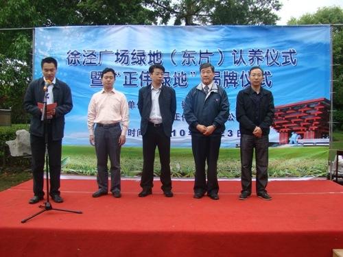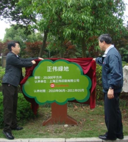 上海正偉認養徐涇廣場綠地(東片)佔地20,000平米,並命名“正偉綠地”。認養期限為一年,每年認養金額為10萬元人民幣。當天由高劍峰副鎮長代表徐涇鎮政府與上海正偉印刷有限公司總經理周宗正簽訂綠地認養協議書,並共同為“正偉綠地”揭牌;青浦區綠化署副署長張靜也向上海正偉公司頒發了《認建認養榮譽證書》。上海正偉總經理周宗正表示:“企業除了追求利潤外,更應善盡社會責任,關注‘可持續發展’。希望透過活動能吸引更多的社會力量一起參與綠地認養,讓員工感受到地球是唯一的家園,喚起全社會的重視,為進一步提升徐涇的生態環境品質作出貢獻。”